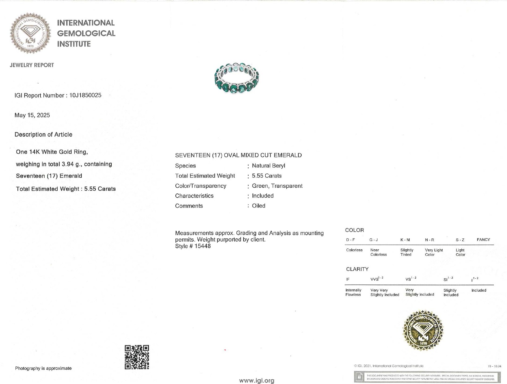 Peso esmeralda: 5,55 ct. aprox.