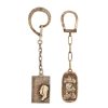 Dos llaveros de plata, uno con perfil de Virgen de Montserrat en plata dorada y otro con tres coches antiguos. Estimación: 180 – 230 €.