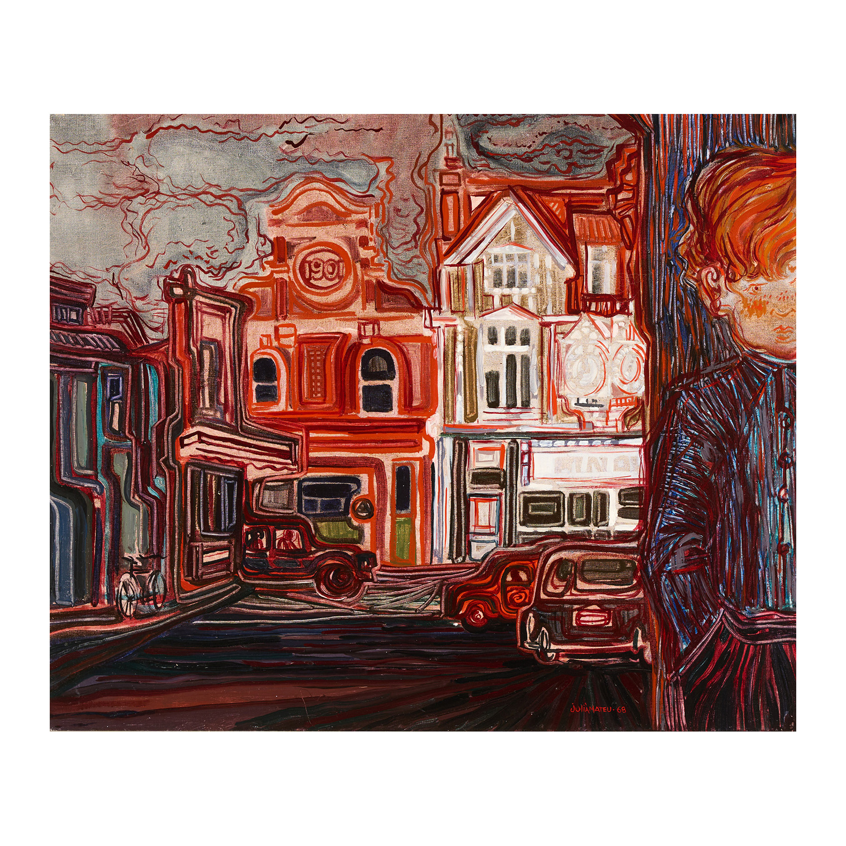 Óleo sobre tela. Firmado y fechado en 1968. Firmado, fechado y localizado en Dalkey, Dublín, al dorso.