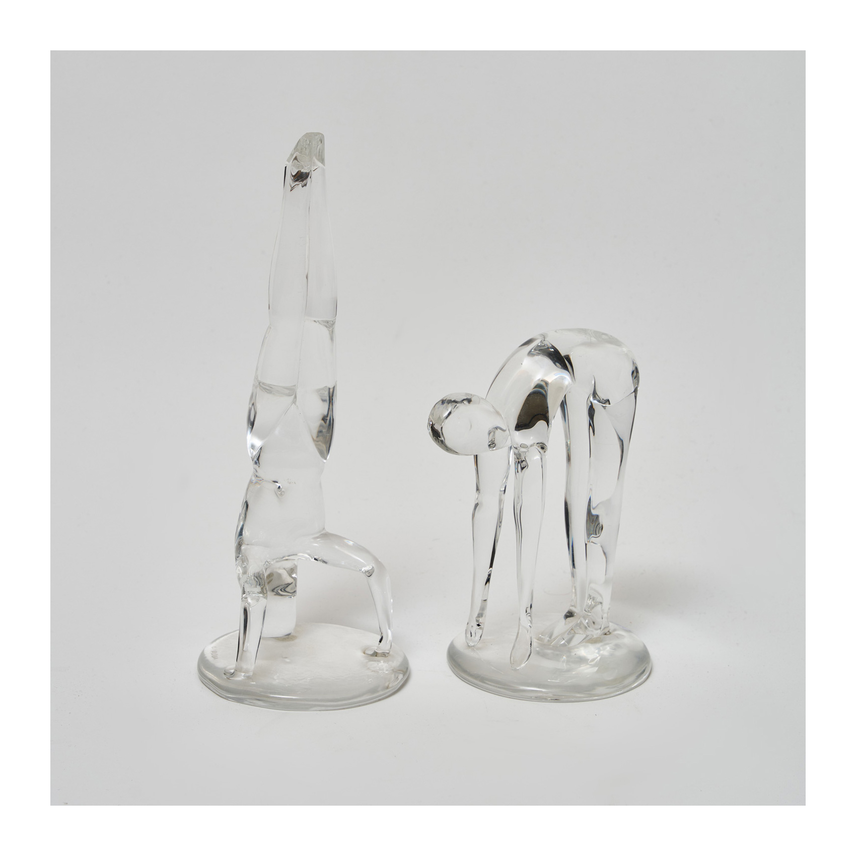 Pareja de gimnastas. Esculturas en cristal de Murano de tonalidad translúcida, c.1970.