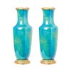 Pareja jarrones en porcelana francesa de Sèvres esmaltada y vidriada en tonalidad azul y amarilla, primera mitad del s.XX. Base y boca en bronce dorado con decoraciones geométricas y de laurel.