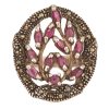 Sortija en plata con centro calado, rubíes talla marquise y marquesitas. Medida: Nº 13. Estimación: 130 – 190 €.