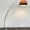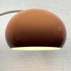 Lámpara de pie modelo «Minerva» con brazo extensible en metal cromado y pantalla de tonalidad moka que al encenderse adopta un cálido tono melocoton, c.1970. Cableado renovado.