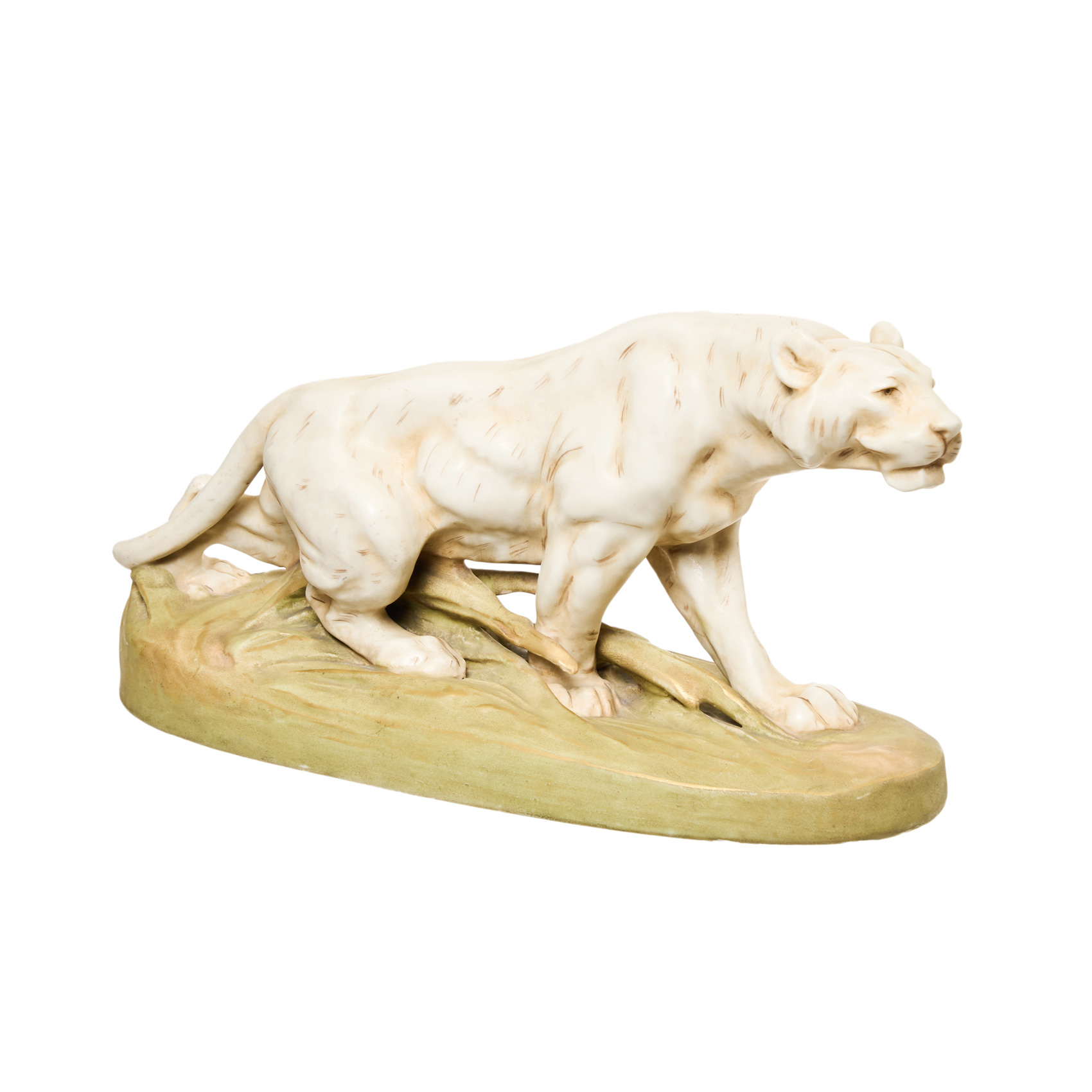 Tigre. Figura en porcelana checa esmaltada con fileteados al oro fino, c.1900. Marcas en la base.