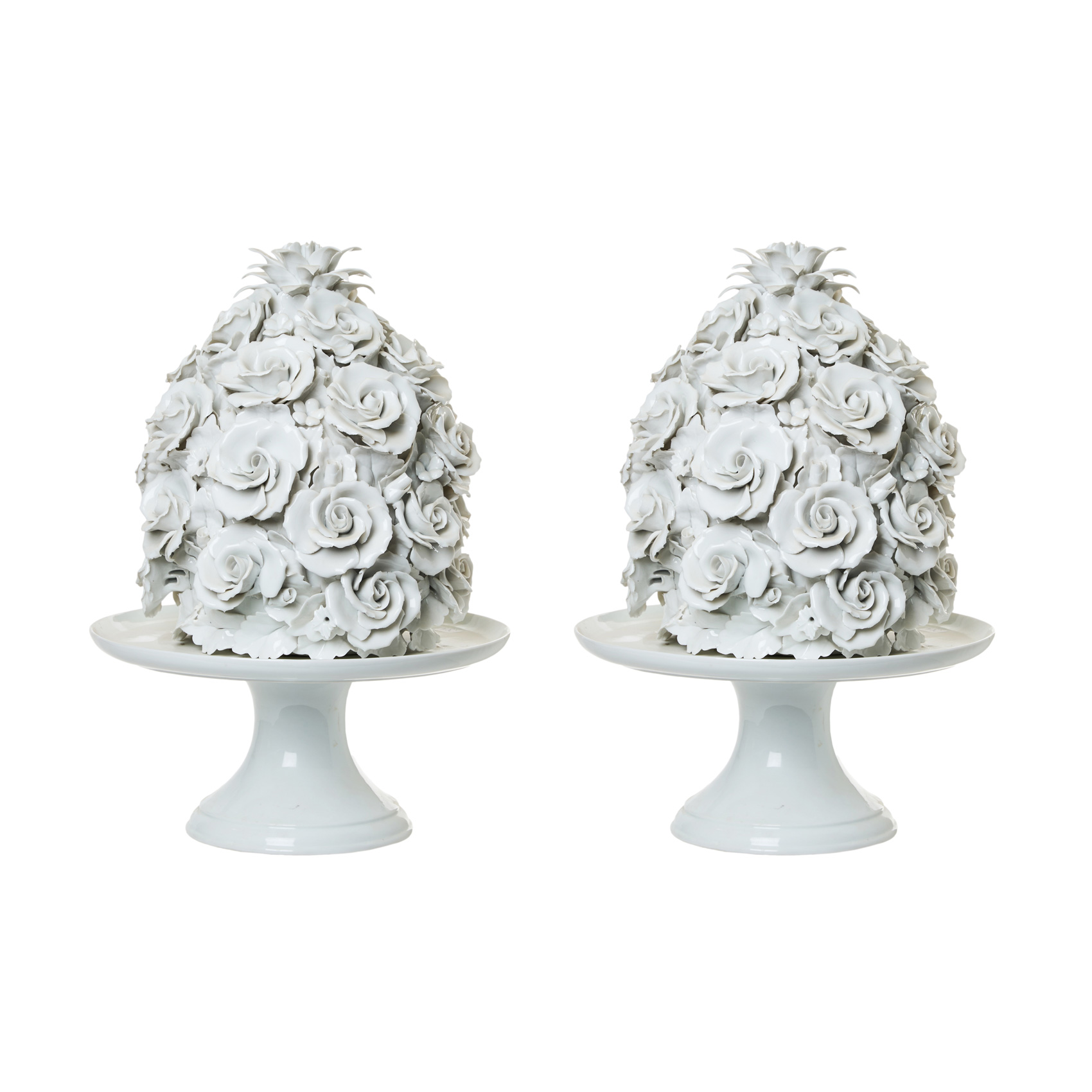 Pareja de centros decorativos o «bouquets» de rosas estilo Regency en porcelana blanca holandesa de la manufactura Porcellain Woestijnroos, mediados del s.XX.