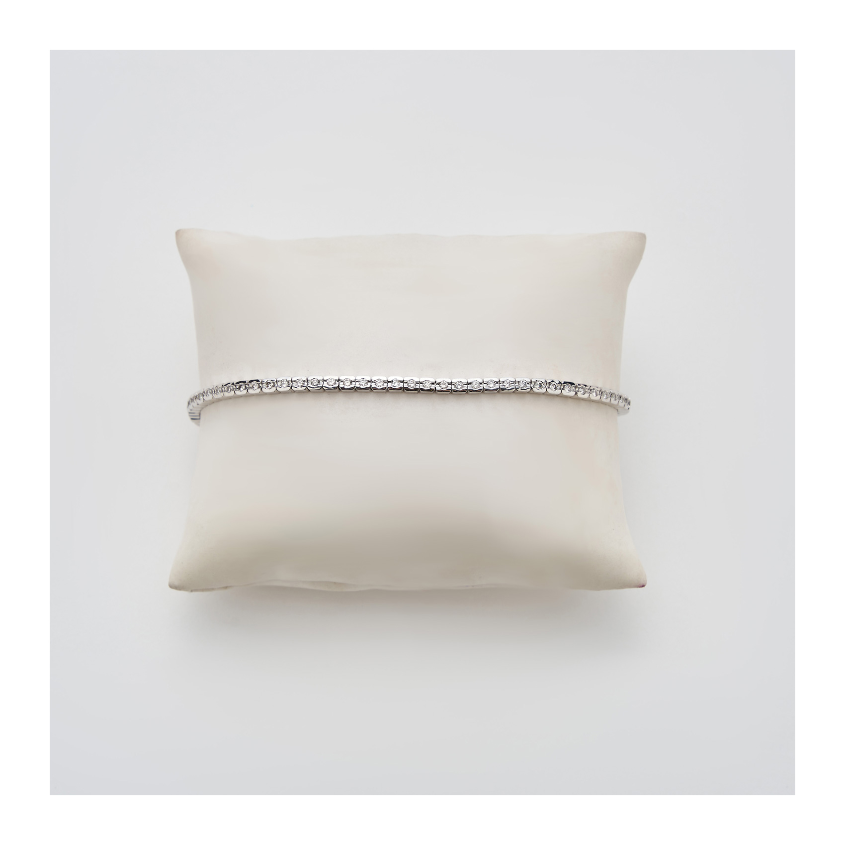 Pulsera rivière en oro blanco con diamantes talla brillante engastados en carril.