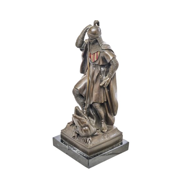 Escultura en bronce patinado y esmaltado sobre peana en mármol negro. Sello de la fundición.