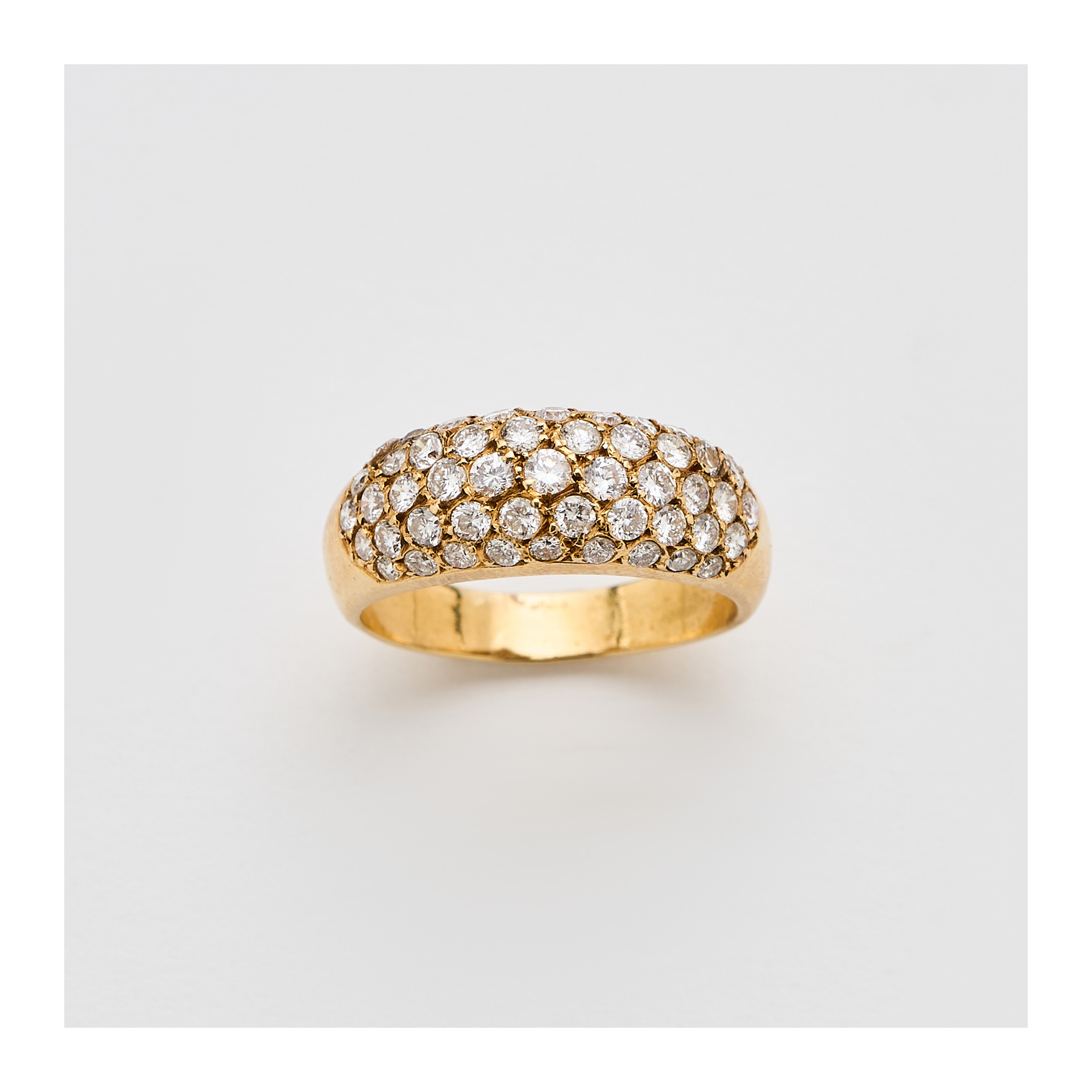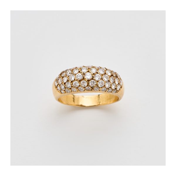 Sortija diseño bombé en oro con diamantes talla brillante.