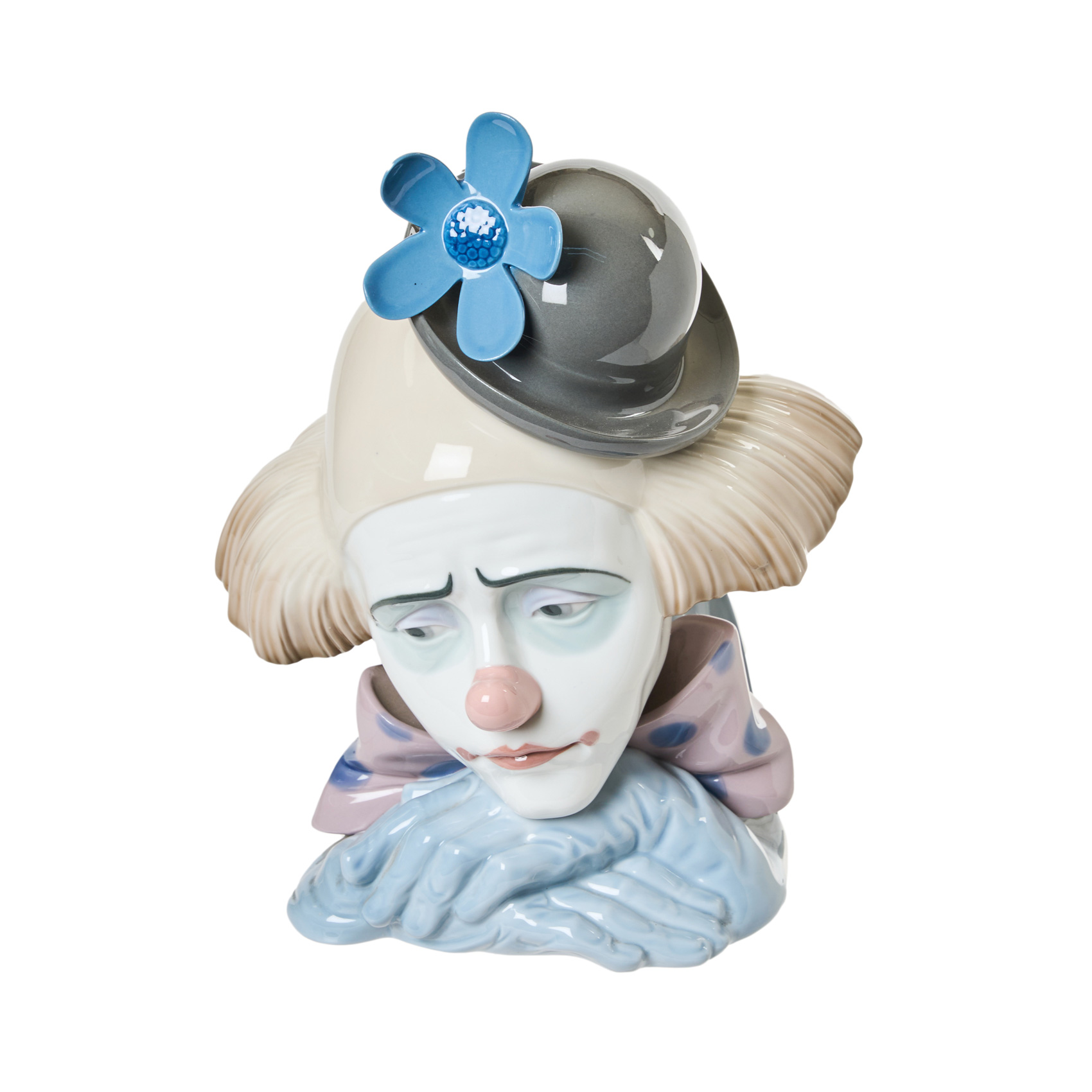 Cabeza de Payaso. Figura en porcelana española, 1987. Escultor José Puche. Nº01005130. Marcas en la base.