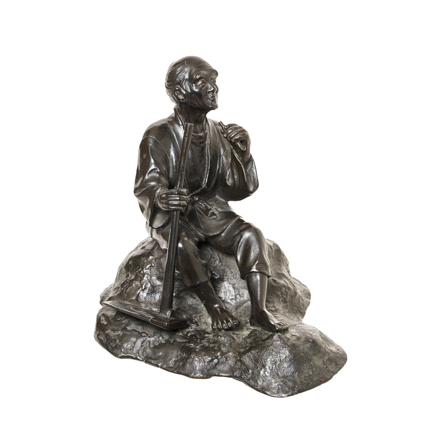 Campesino. Escultura japonesa en bronce patinado, s.XX.