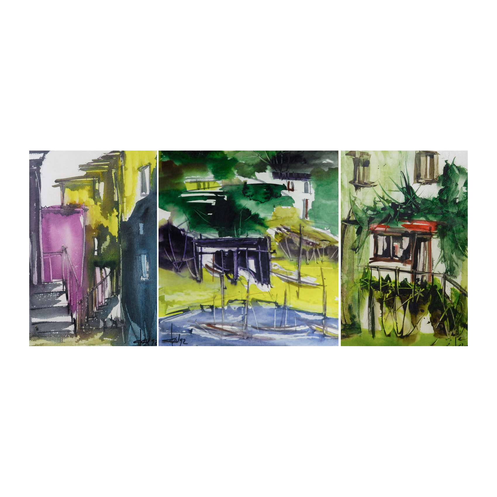 Lote de tres acuarelas sobre papel. Firmadas Clau y fechadas en 1992 y 1993.