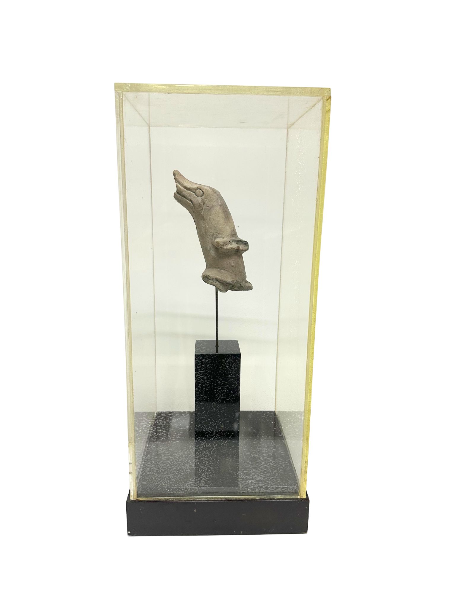 Fragmento de escultura precolombina en terracota con representación de figura zoomorfa o delfín. Periodo Tumaco – La Tolita, actual Ecuador y Colombia, 500 a.C.-500 d.C. En buen estado de conservación. Adjunta certificado de autenticidad.