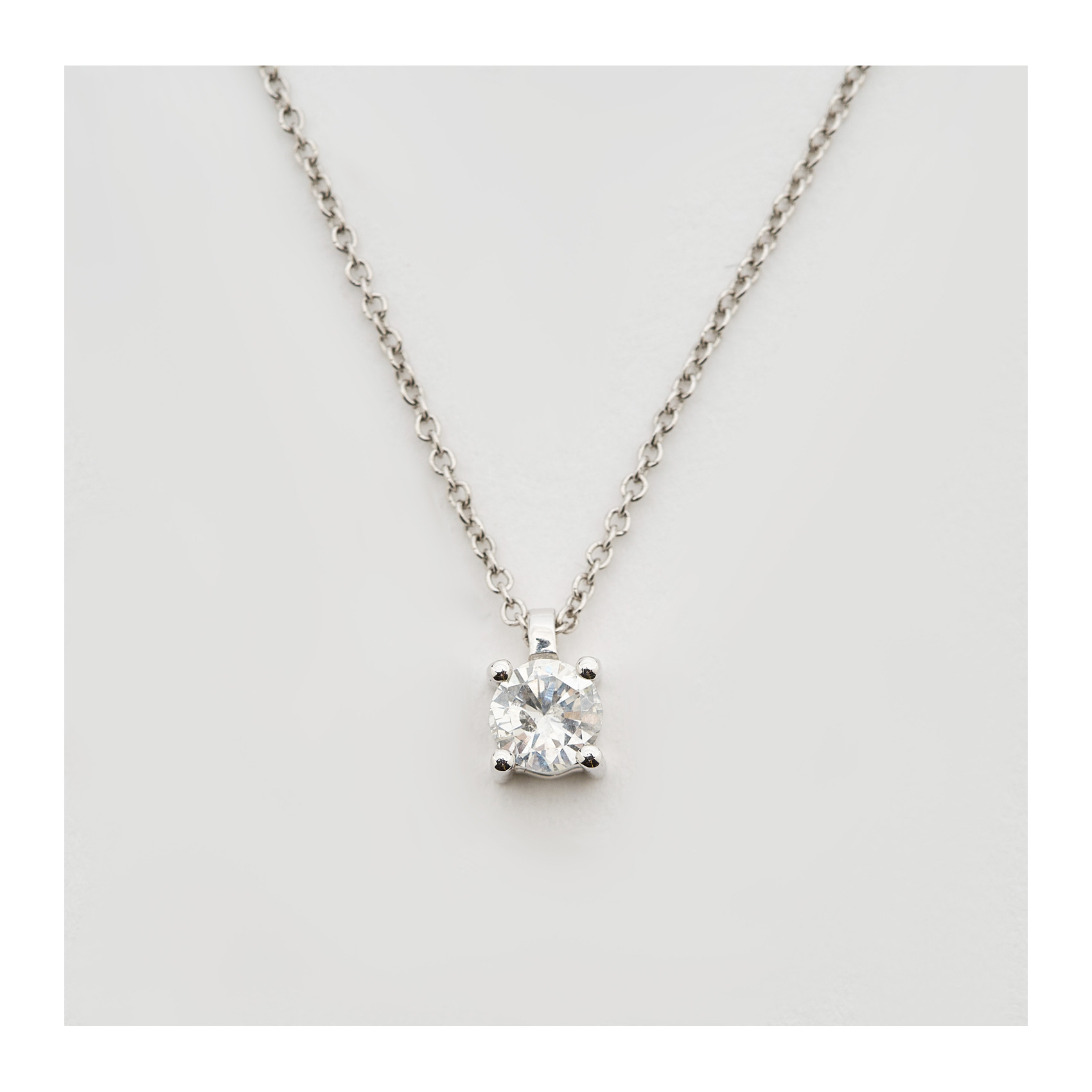 Gargantilla en oro blanco con diamante talla brillante engastado en garras.
