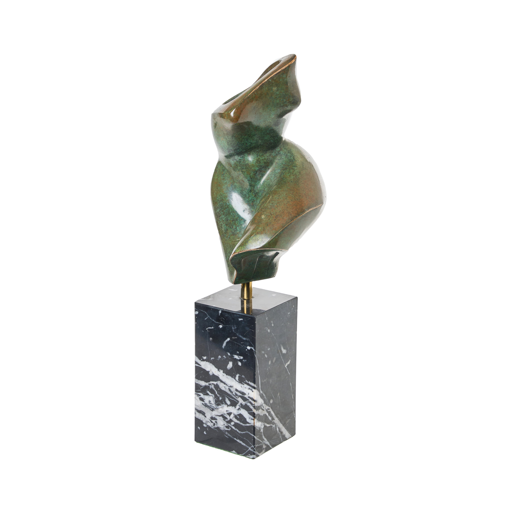 Escultura en bronce patinado sobre peana en mármol negro veteado. Firmada y numerada 18/250.