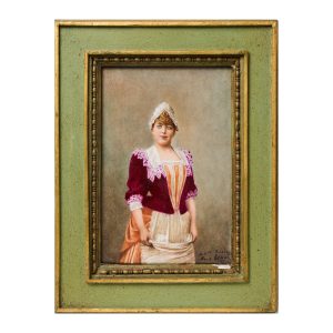 20 x 20 x 6 cm. (con peana). Presenta leve falta y restauración en un brazo. Estimación:550 – 650€