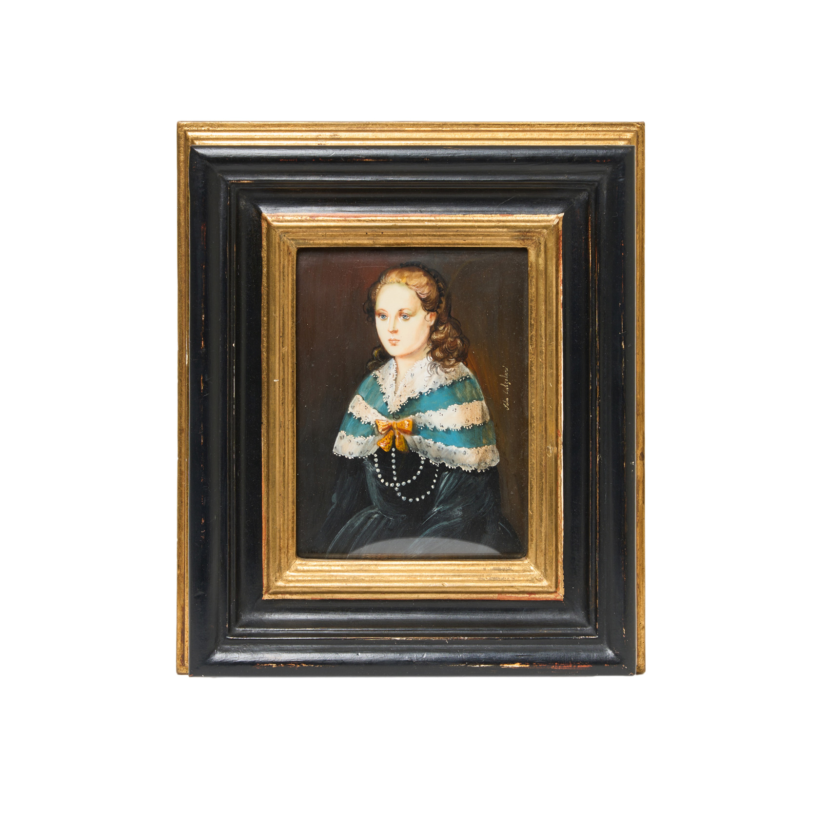 Miniatura francesa pintada al guache sobre placa en hueso con represetación de joven, s.XX. Firmada.