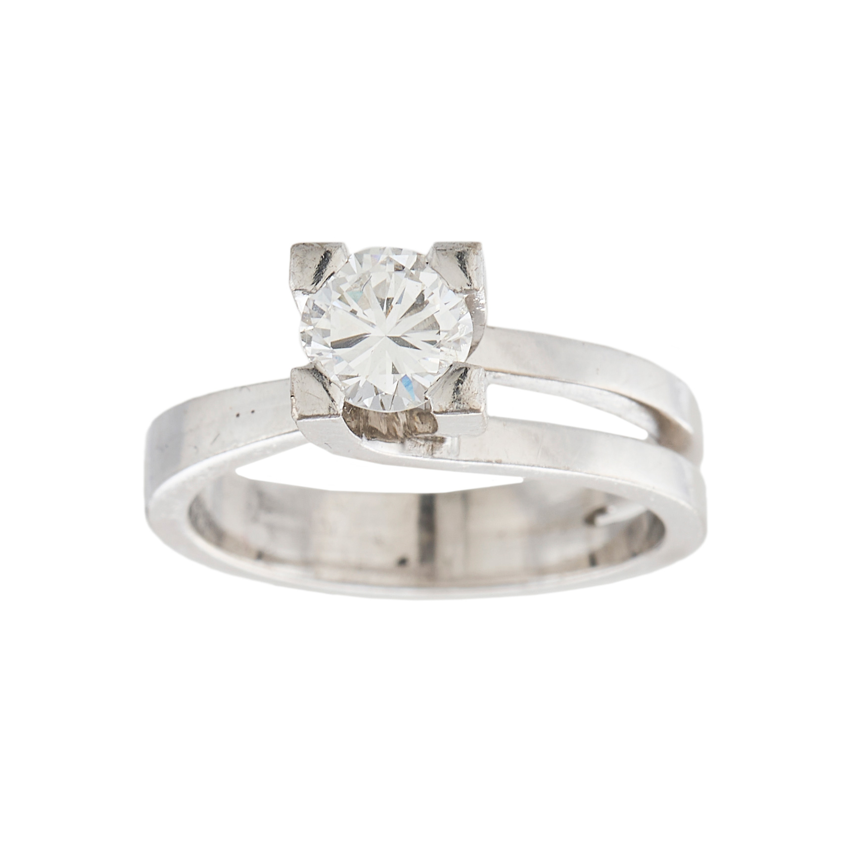 Sortija solitario en oro con diamante talla brillante engastado en garras.