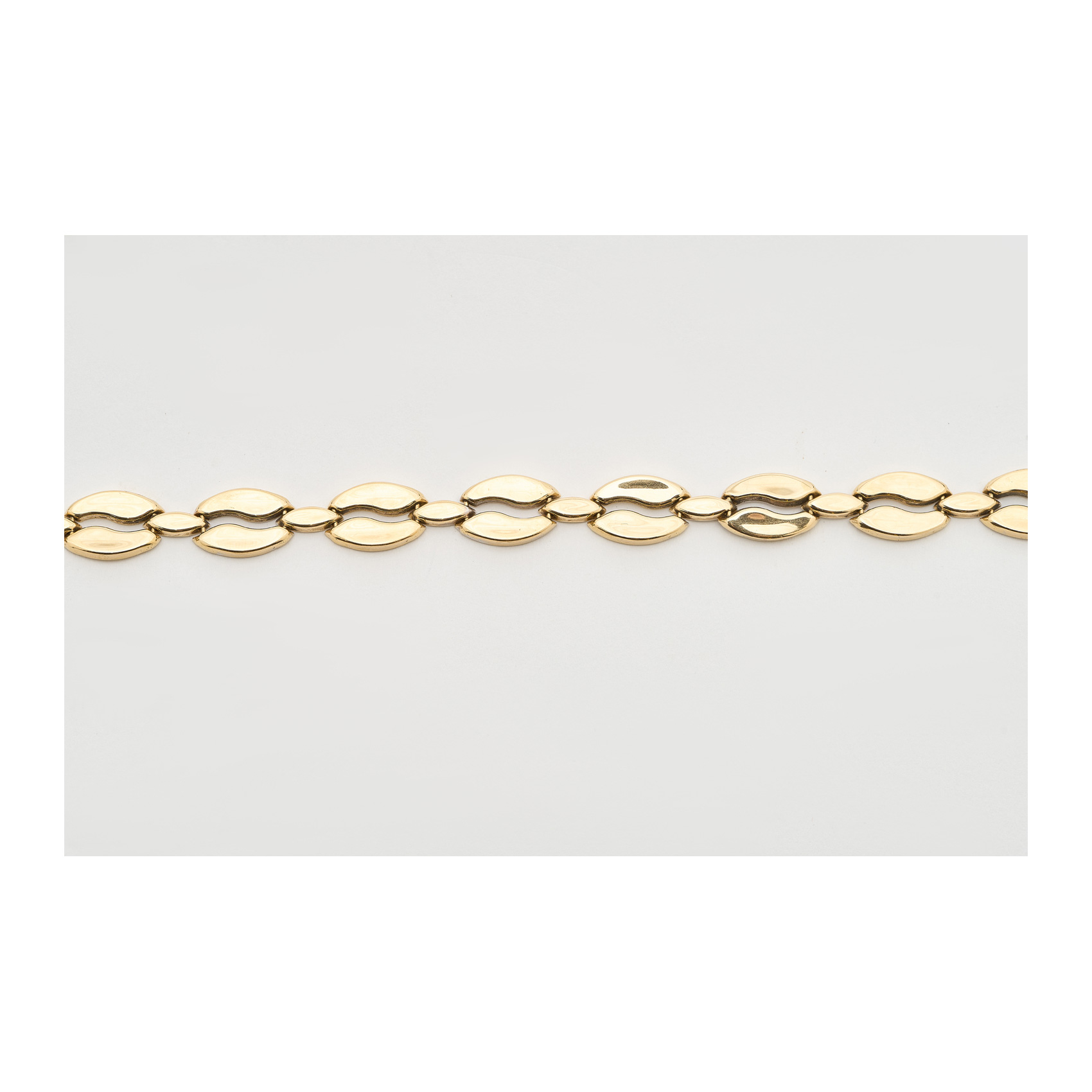 Pulsera de eslabones ovales calados en oro bicolor mate y brillo.