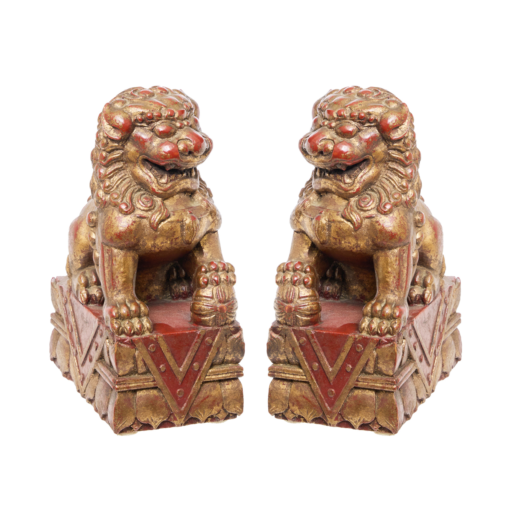 Pareja de furias orientales en madera tallada, policromada y parcialmente dorada, s.XX.