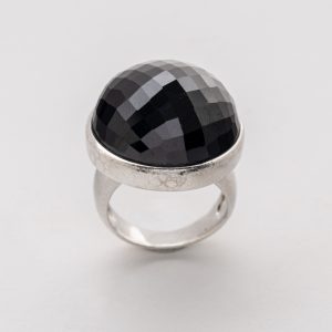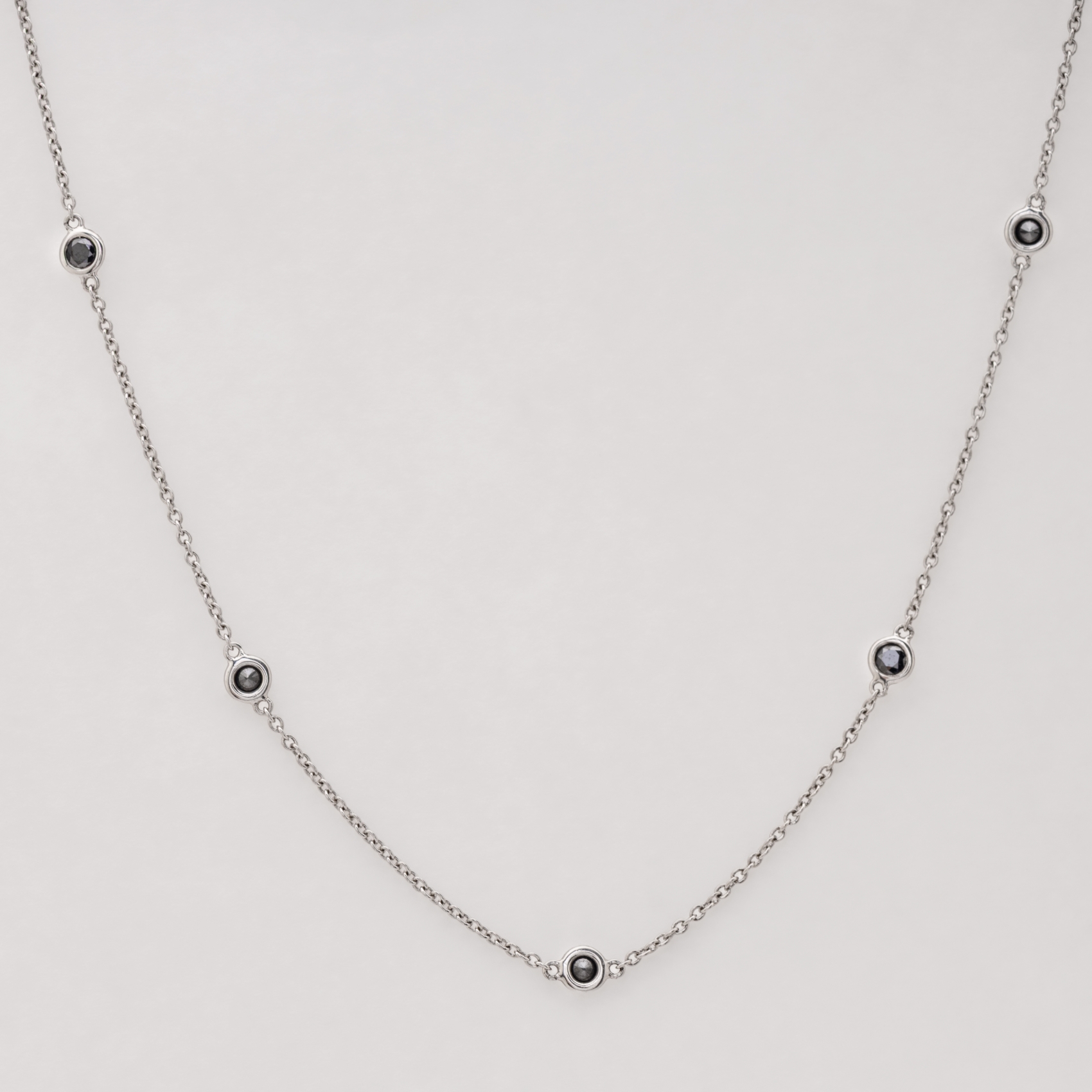 Gargantilla de cadena forjada en oro blanco con diamantes negros talla brillante engastados en chatón.