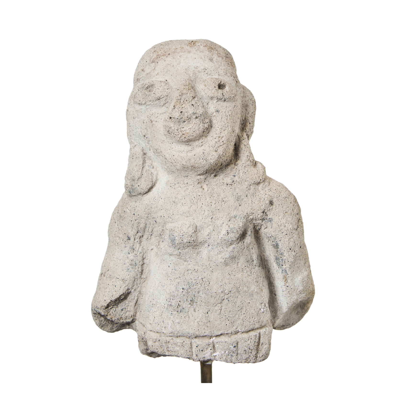 Fragmento de escultura precolombina en terracota con representación de personaje. Cultura Tumaco – La Tolita, actual Ecuador y Colombia, 500 a.C.-500 d.C. Custodiado en urna expositora. En buen estado de conservación. Adjunta certificado de autenticidad.