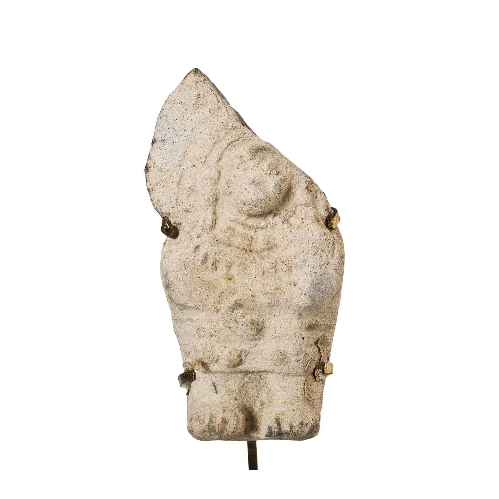 Fragmento de escultura precolombina en terracota con representación de personaje o divinidad. Cultura Tumaco – La Tolita, actual Ecuador y Colombia, 500 a.C.-500 d.C. Custodiado en urna expositora. En buen estado de conservación. Adjunta certificado de autenticidad.