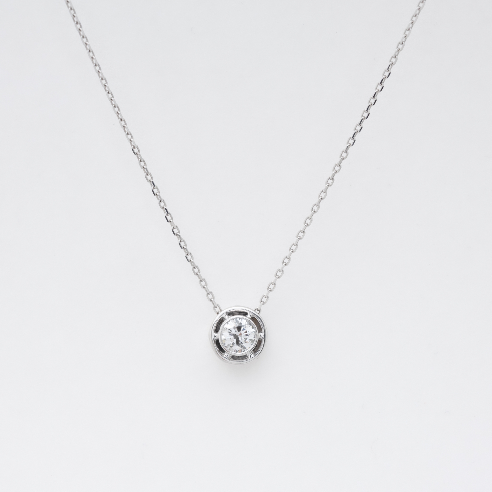 Gargantilla en oro blanco con diamante talla brillante antigua engastado en chatón.