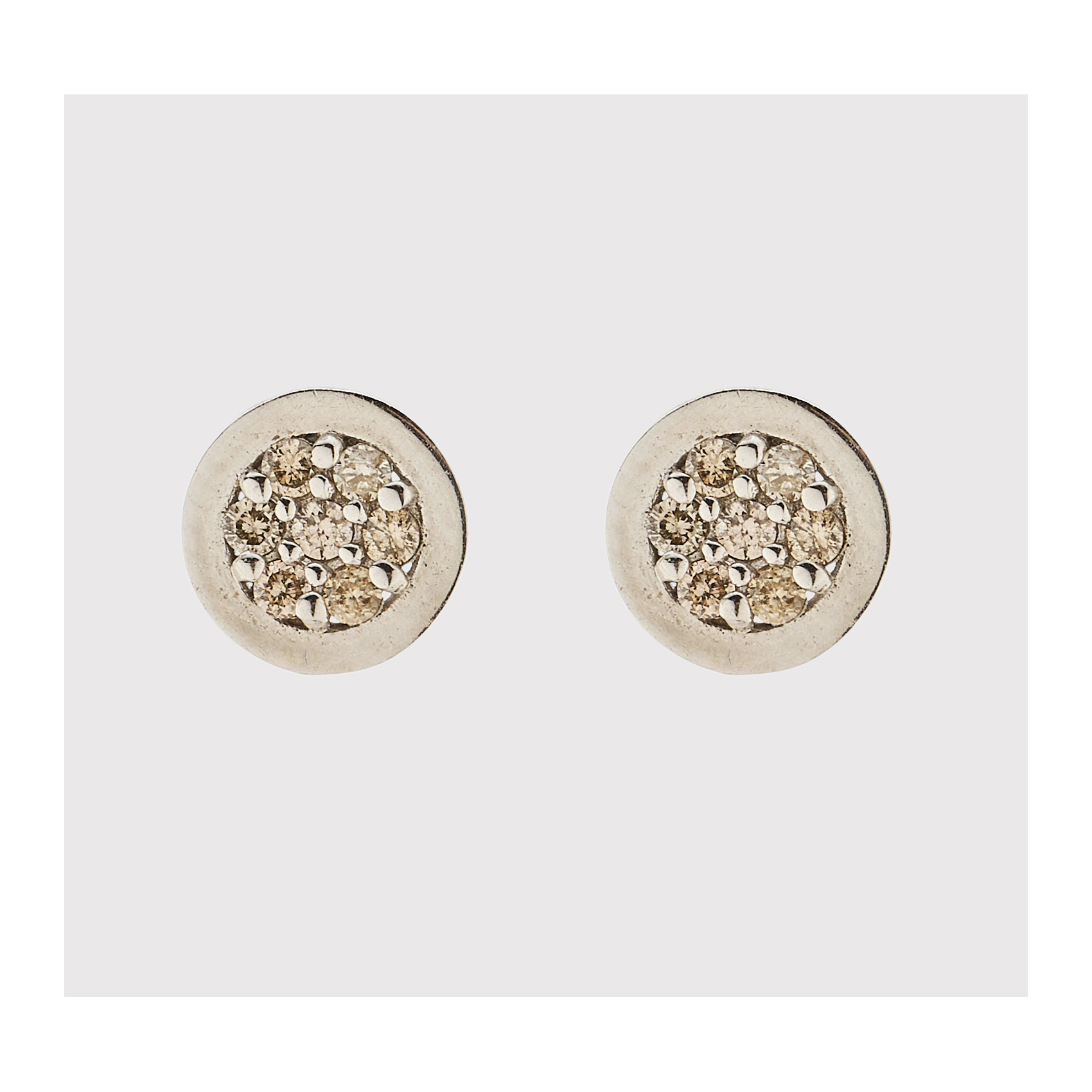 Pendientes diseño circular en oro blanco con rosetón central de diamantes talla brillante.