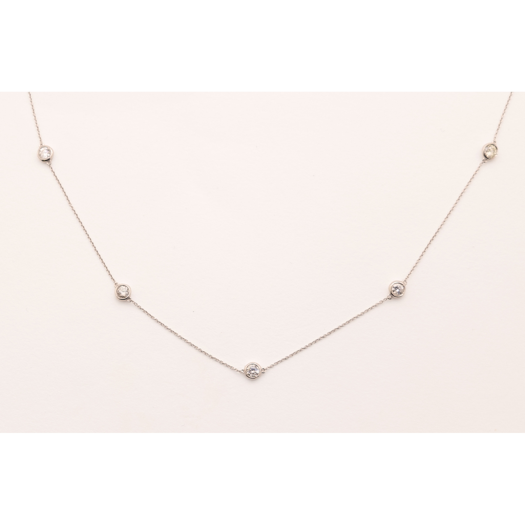 Gargantilla de cadena forjada en oro blanco con chatones de diamantes talla brillante alternados.