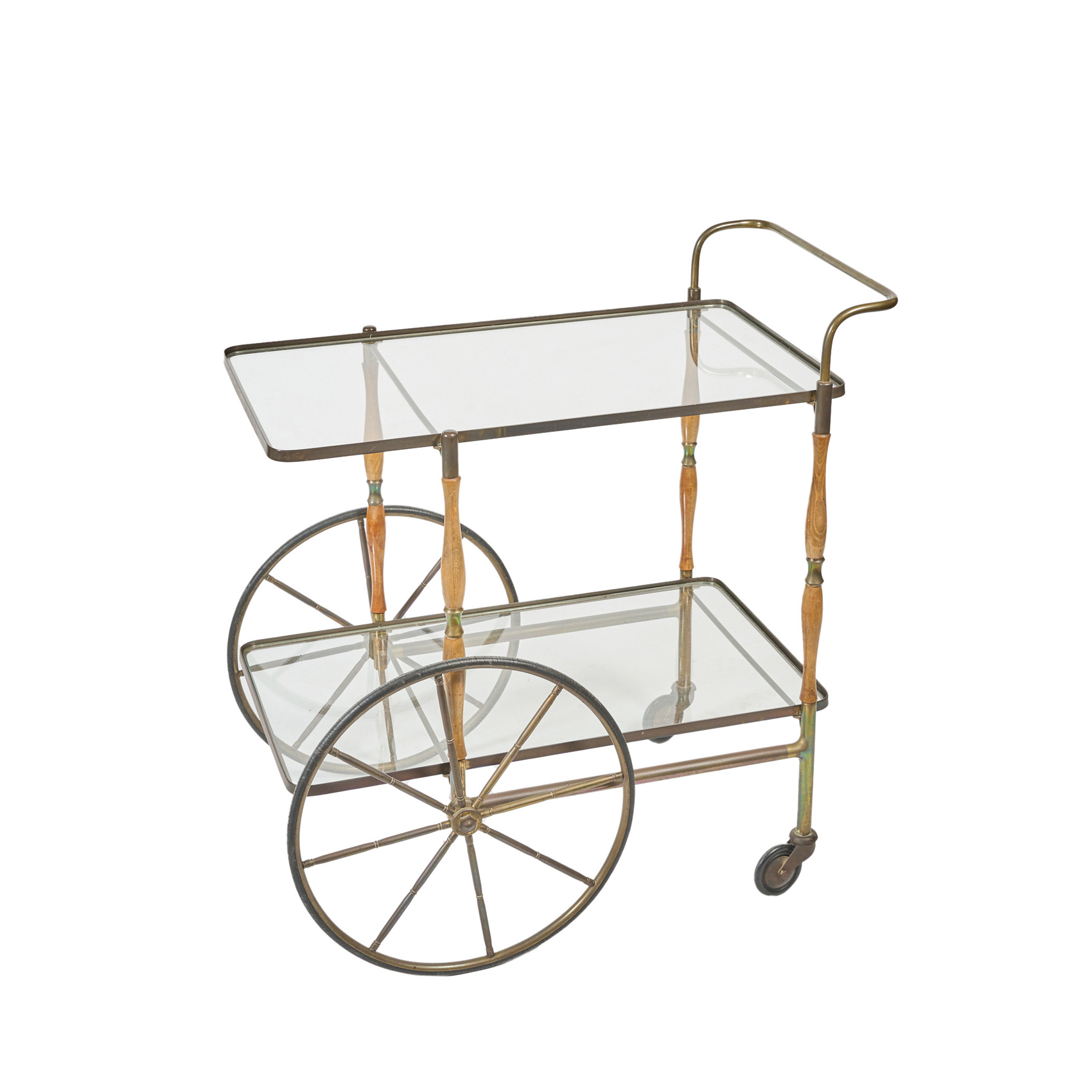 Camarera o carro de servicio estilo inglés de doble altura con estructura en latón y madera con sobres en cristal, ppios. del s.XX.