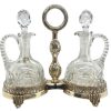 Convoy de vinagreras en plata española punzonada y cristal tallado de la Manufactura Central Suiza S.A., Barcelona, mediados del s.XX. 22 x 26 x 14 cm. Peso plata: 235 gr. Estimación: 270 – 330 €.