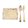 Lote de 19 piezas en plata punzonada, compuesto por bandeja, nueve tenedores de mesa y nueve cucharas de mesa, s.XX. Bandeja: 19 x 14 cm. Peso: 1.092 gr. Estimación: 450 – 550 €.