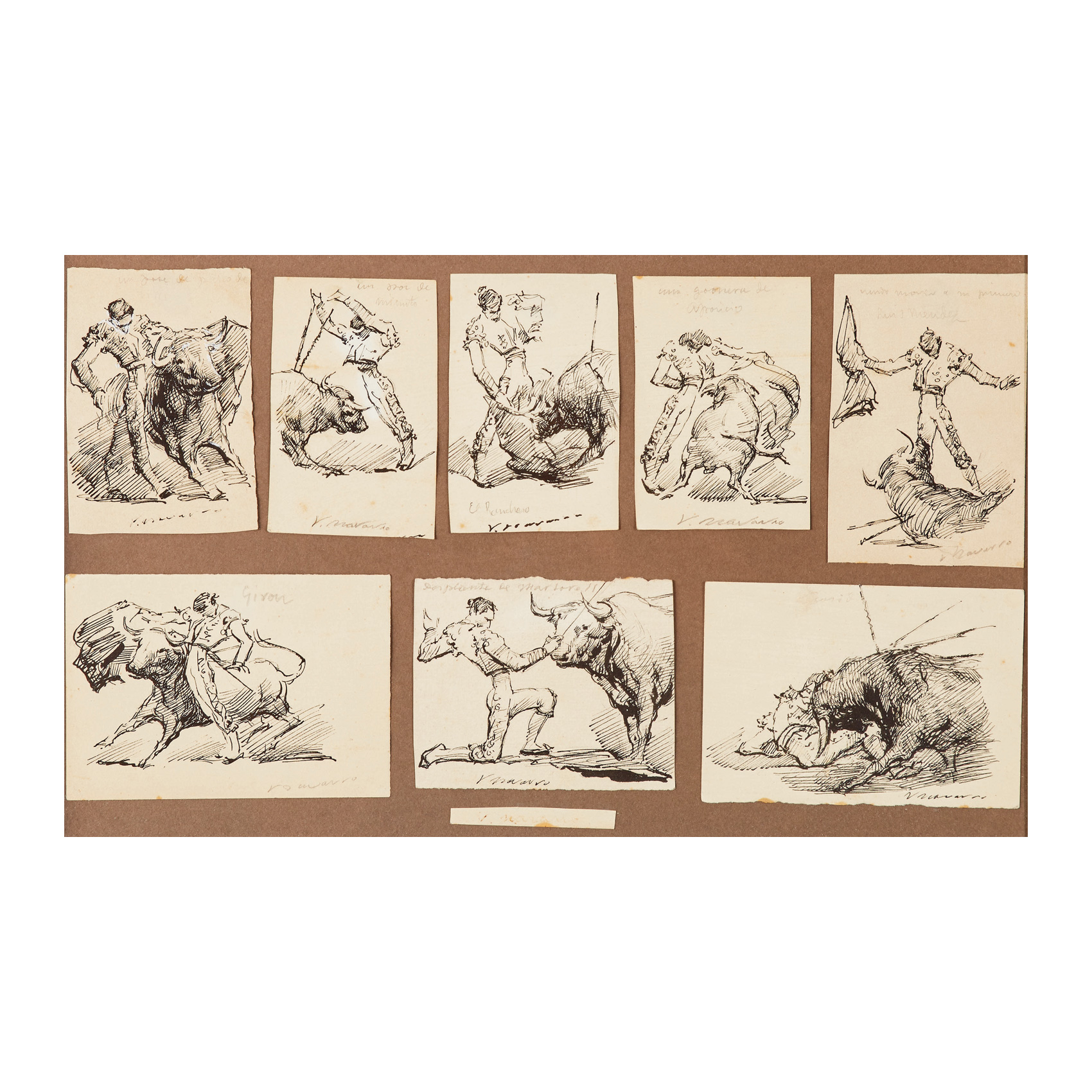 Lote de ocho dibujos a tinta sobre papel. Firmados. Enmarcados juntos.