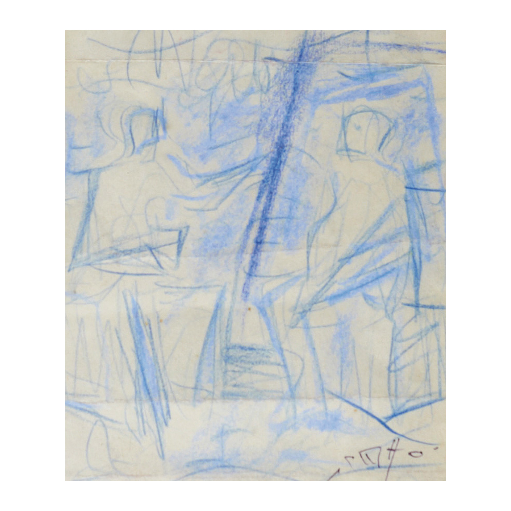 Dibujo a ceras sobre papel en anverso y reverso. Firmado.