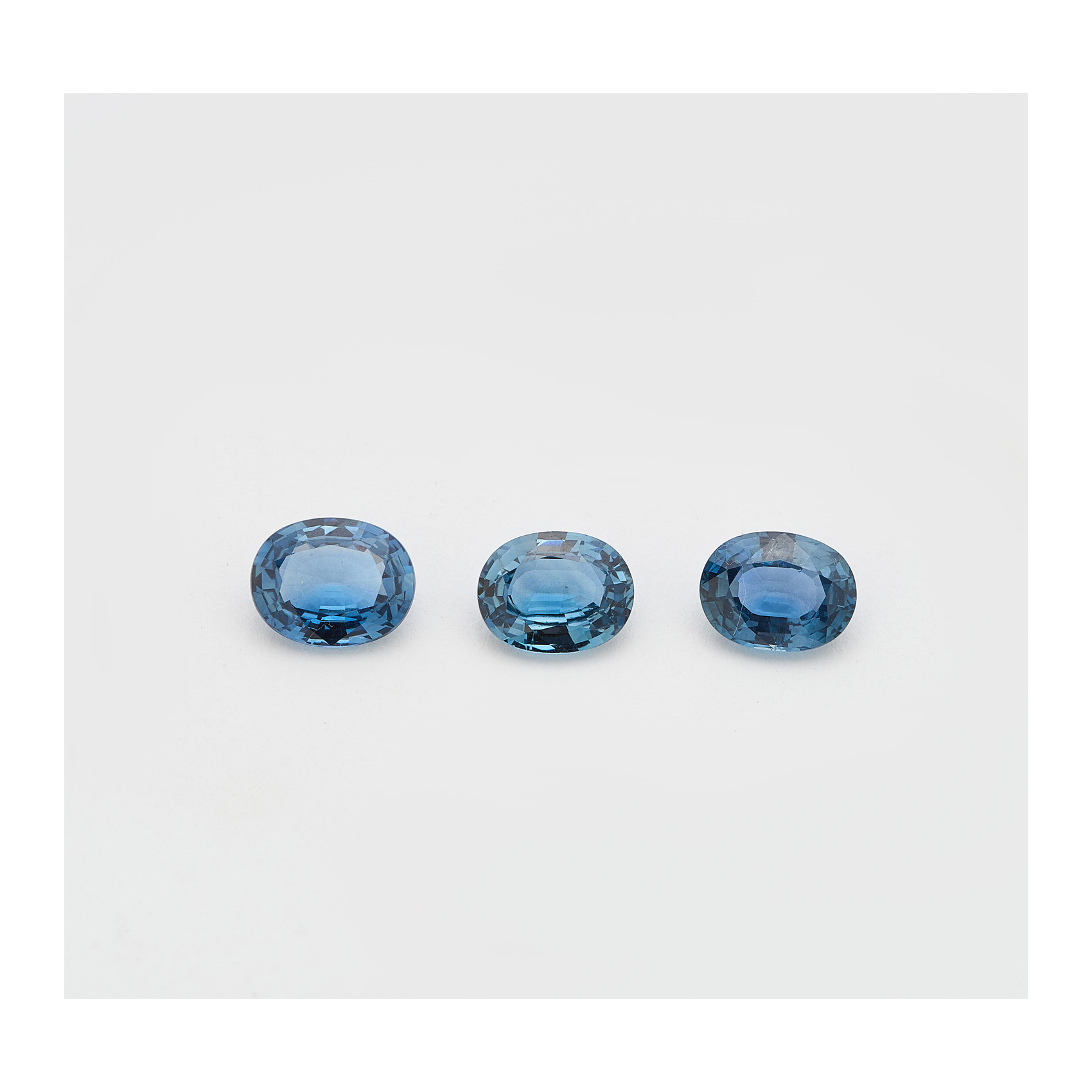 Tres zafiros azules talla oval, dos de 7 x 5 mm y el tercero de 8 x 6 mm.