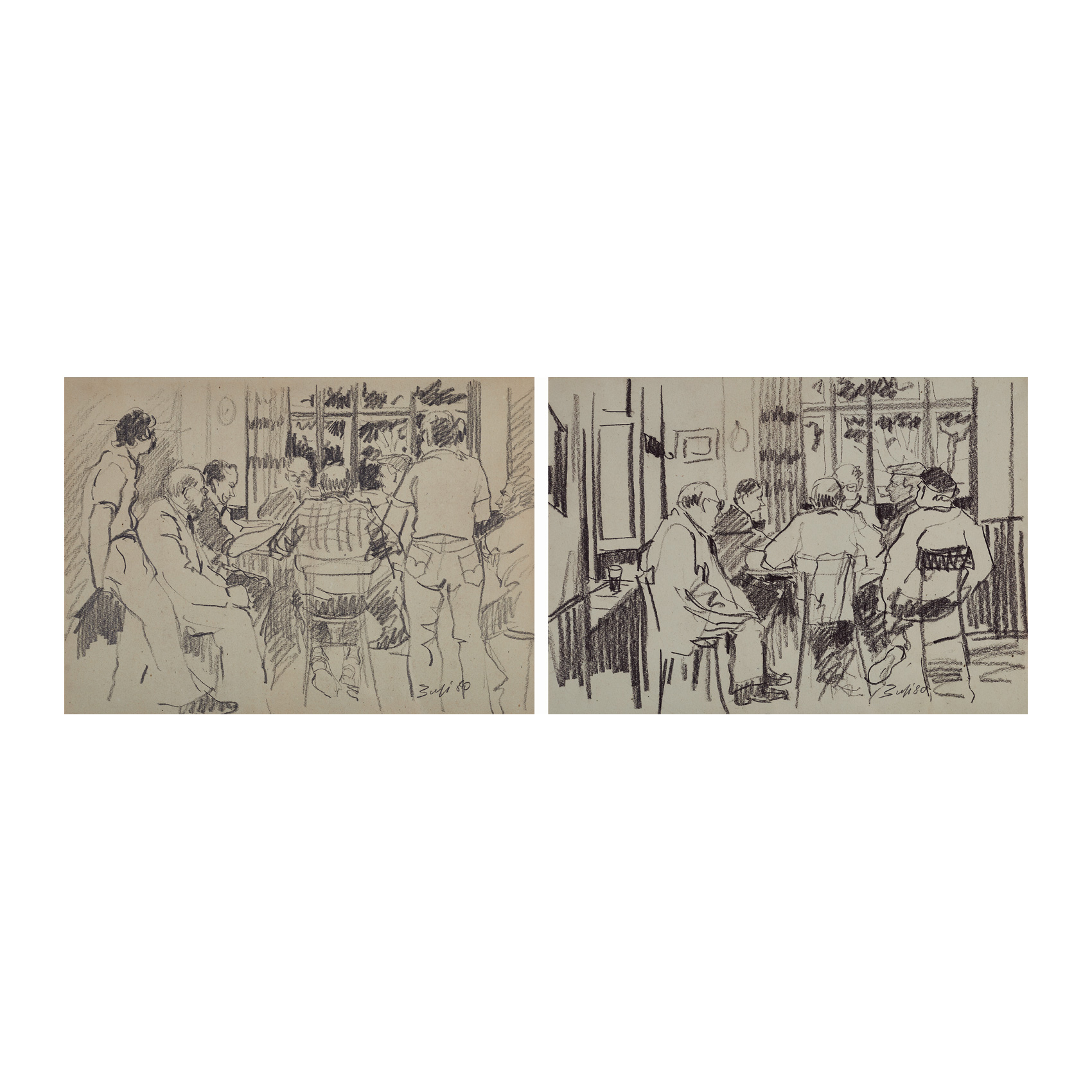 Pareja de dibujos a carboncillo sobre papel. Firmados y fechados en 1980.