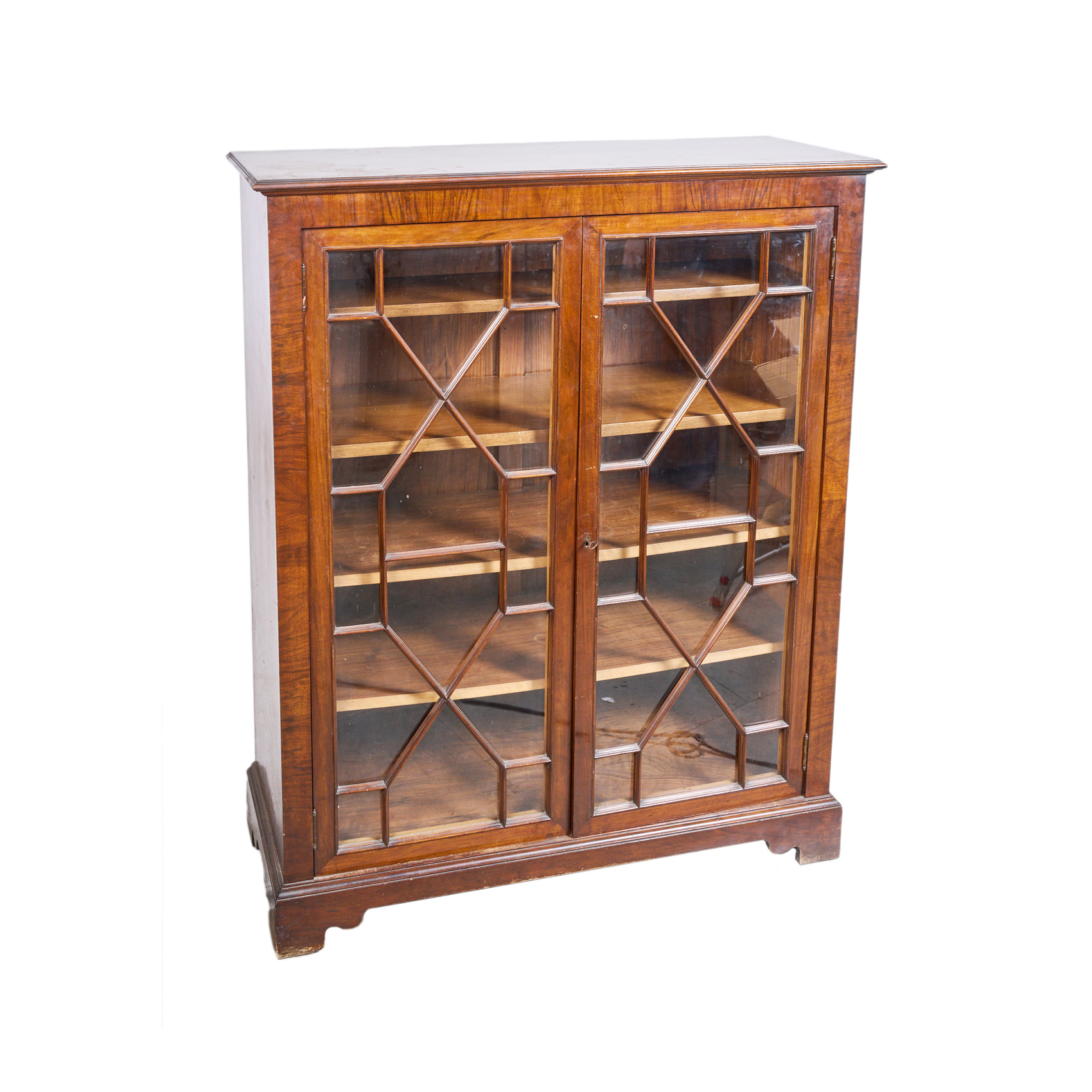 Librería astral inglesa en madera de caoba con cinco estantes en el interior, s.XX. Adjunta llave.
