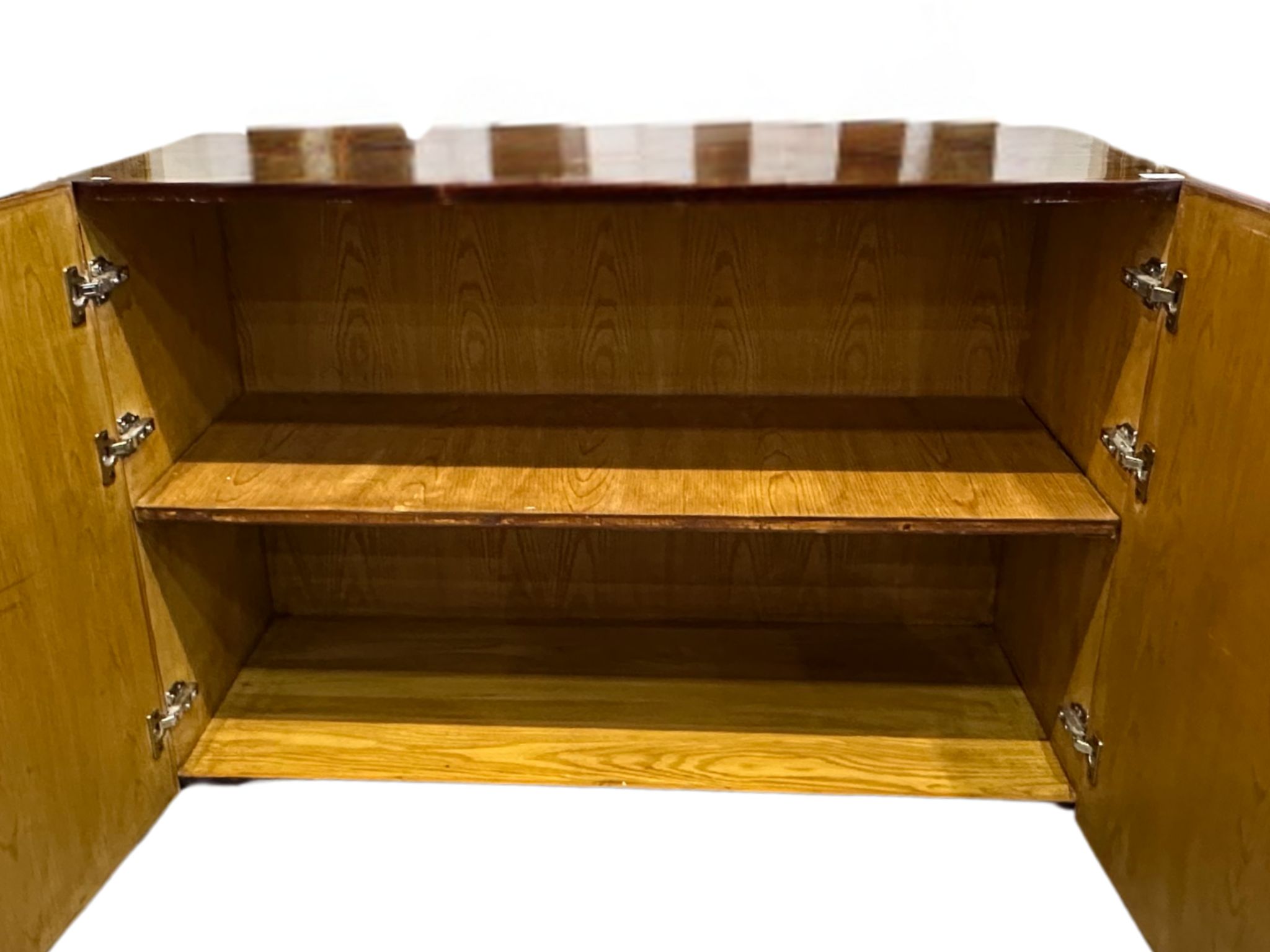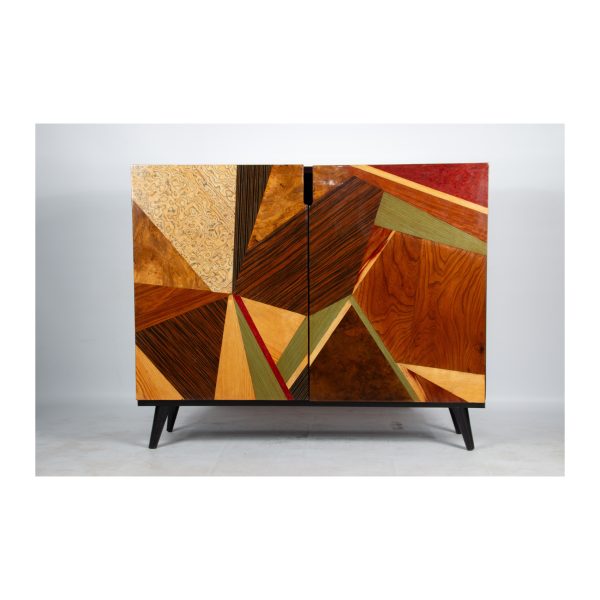 Aparador de dos puertas abatibles realizado en diferentes maderas y texturas con decoración geométrica irregular, s.XX.