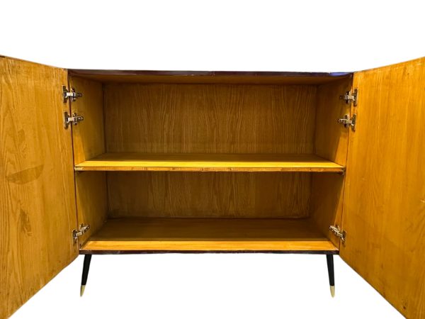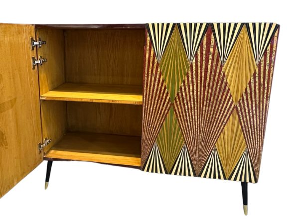 Aparador de dos puertas con marqueterías de diferentes tonos con decoración geométrica espigada, s.XX.