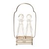 Convoy de vinagreras en cristal tallado y plata 800 punzonada con decoraciones geométricas caladas, mediados del s.XX. 22 x 11,5 x 4,5 cm. Estimación: 180 – 240 €.