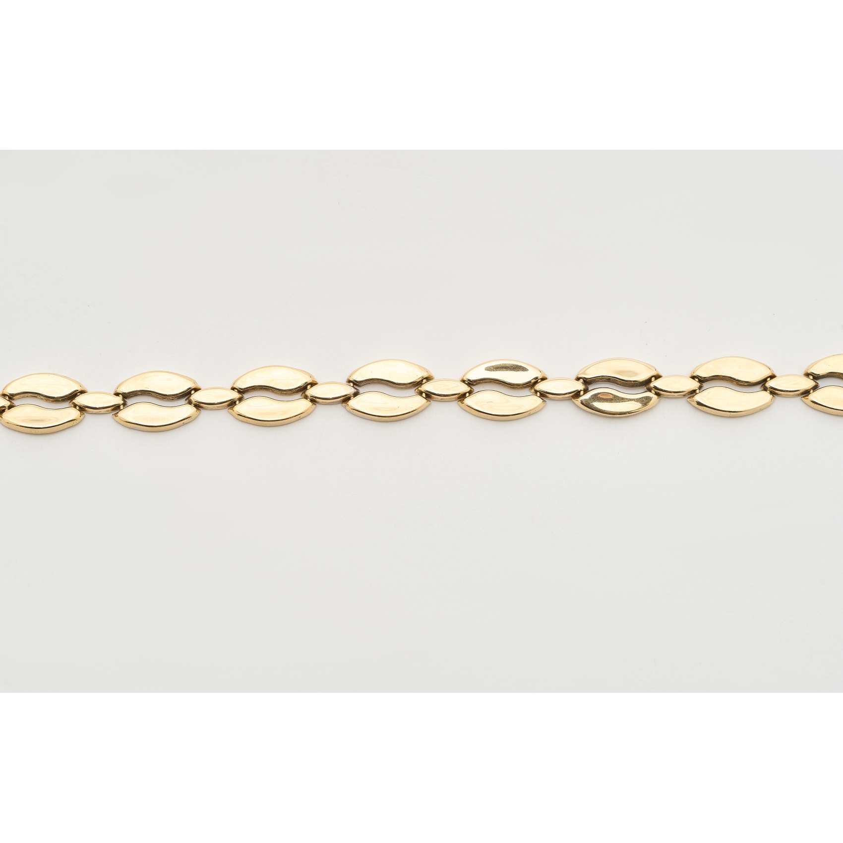 Pulsera de eslabones ovales calados en oro bicolor mate y brillo.