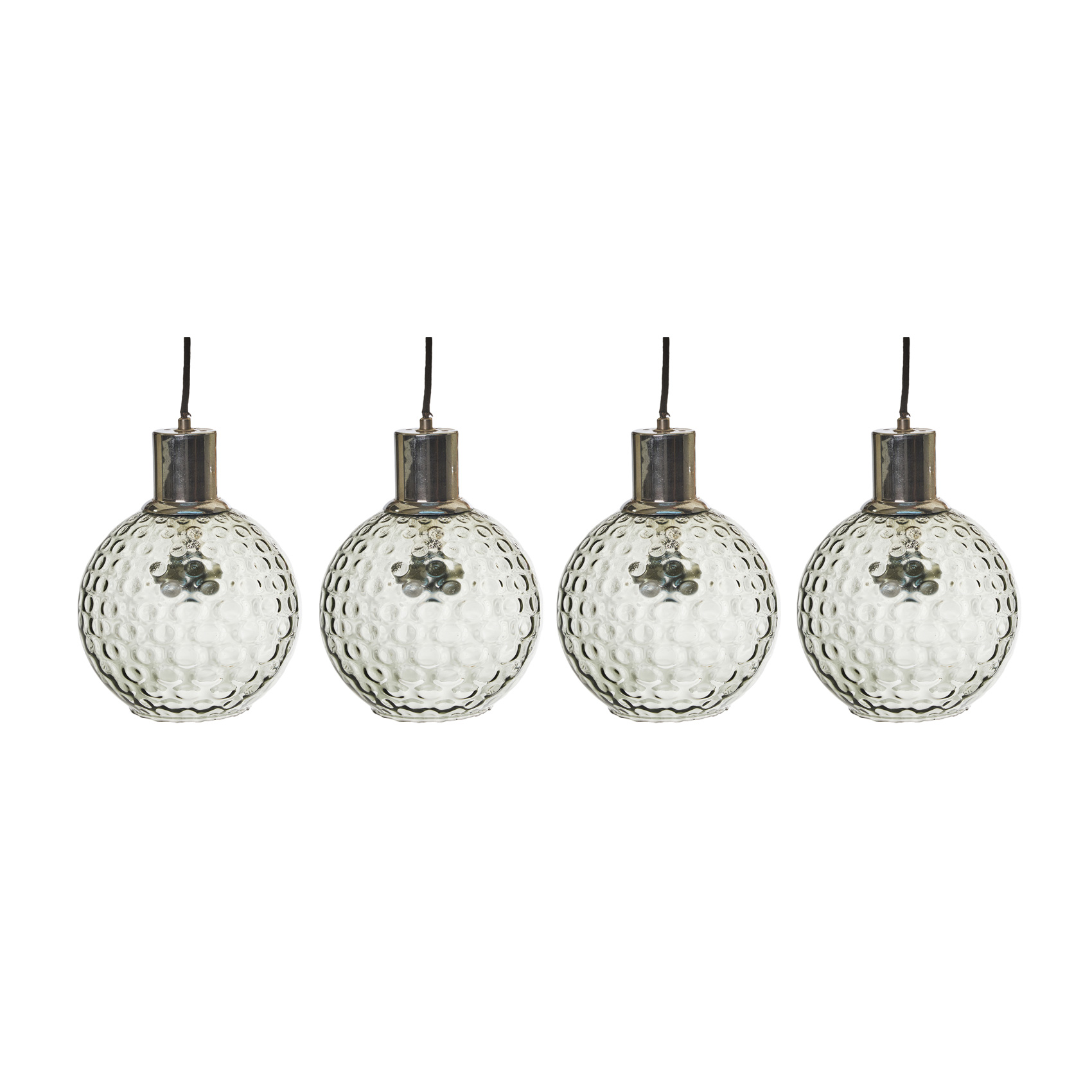 Lote compuesto por cuatro lámparas de techo en vidrio ahumado con decoración de motivos circulares y sujeción en metal cromado, c.1950.