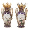 Pareja de jarrones en porcelana azul y blanca con decoración de amorcillos y motivos vegetales en dorado, fles. del s.XIX. 44 x 21,5 x 15,5 cm. c/u. Presenta restauración uno. Estimación: 250 – 350 €.