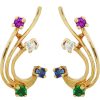 Dos pares de pendientes en oro, diamante talla brillante, rubí, zafiro azul y esmeralda talla redonda engastados en garras.