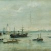 Emili Sivillá Torres (Barcelona, 1845-1894) Puerto con barcos. Óleo sobre tela. Firmado y fechado en 1888. Etiqueta de la Sala Parés, Barcelona, en el bastidor. 40 x 100 cm. Presenta pequeña restauración. Estimación: 2000 – 2200 €.