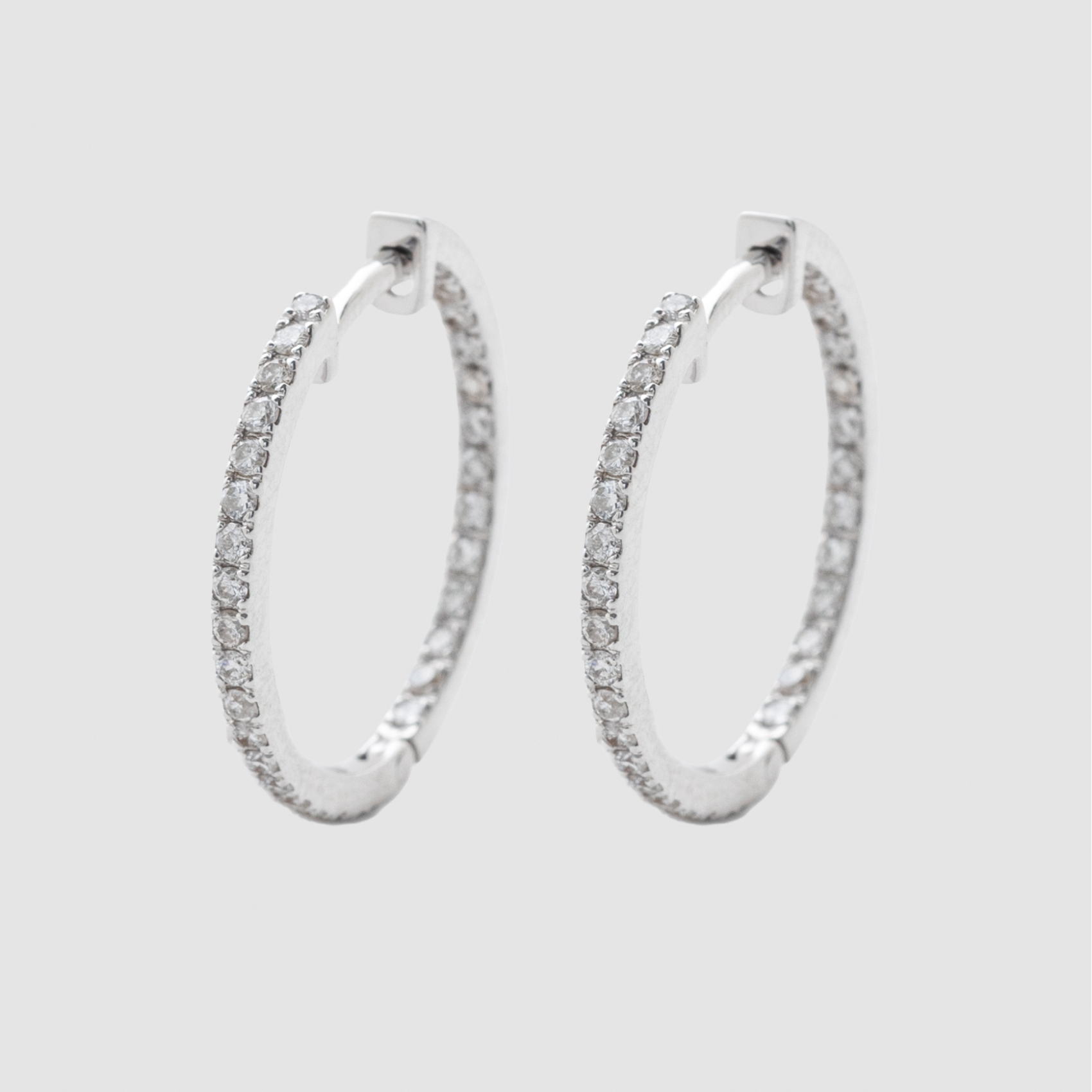 Pendientes criolla en oro blanco con diamantes talla brillante engastados en garras, diám.: 21 mm.