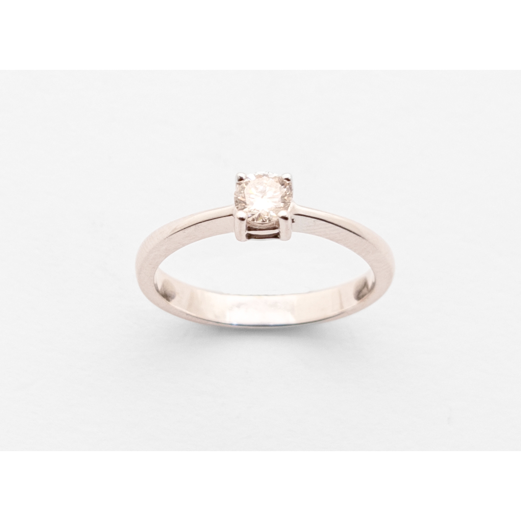 Sortija en oro blanco con diamante talla brillante engastado en garras.