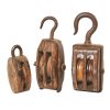 Lote de tres poleas de barco en madera y hierro, fles del s.XIX. Medida máx.: 48 x 18 x 21 cm. Estimación: 230 – 300 €.