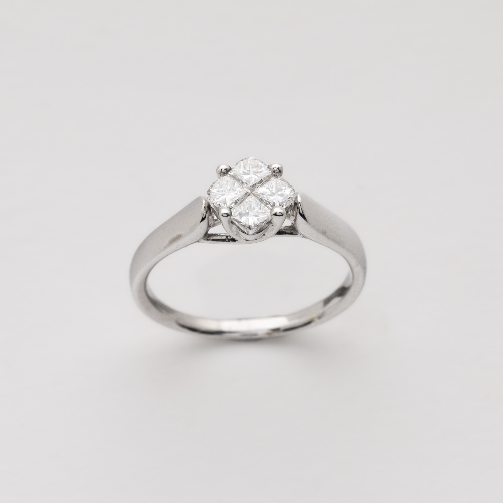 Sortija en oro blanco con dimantes talla brillante engastado en garrras.