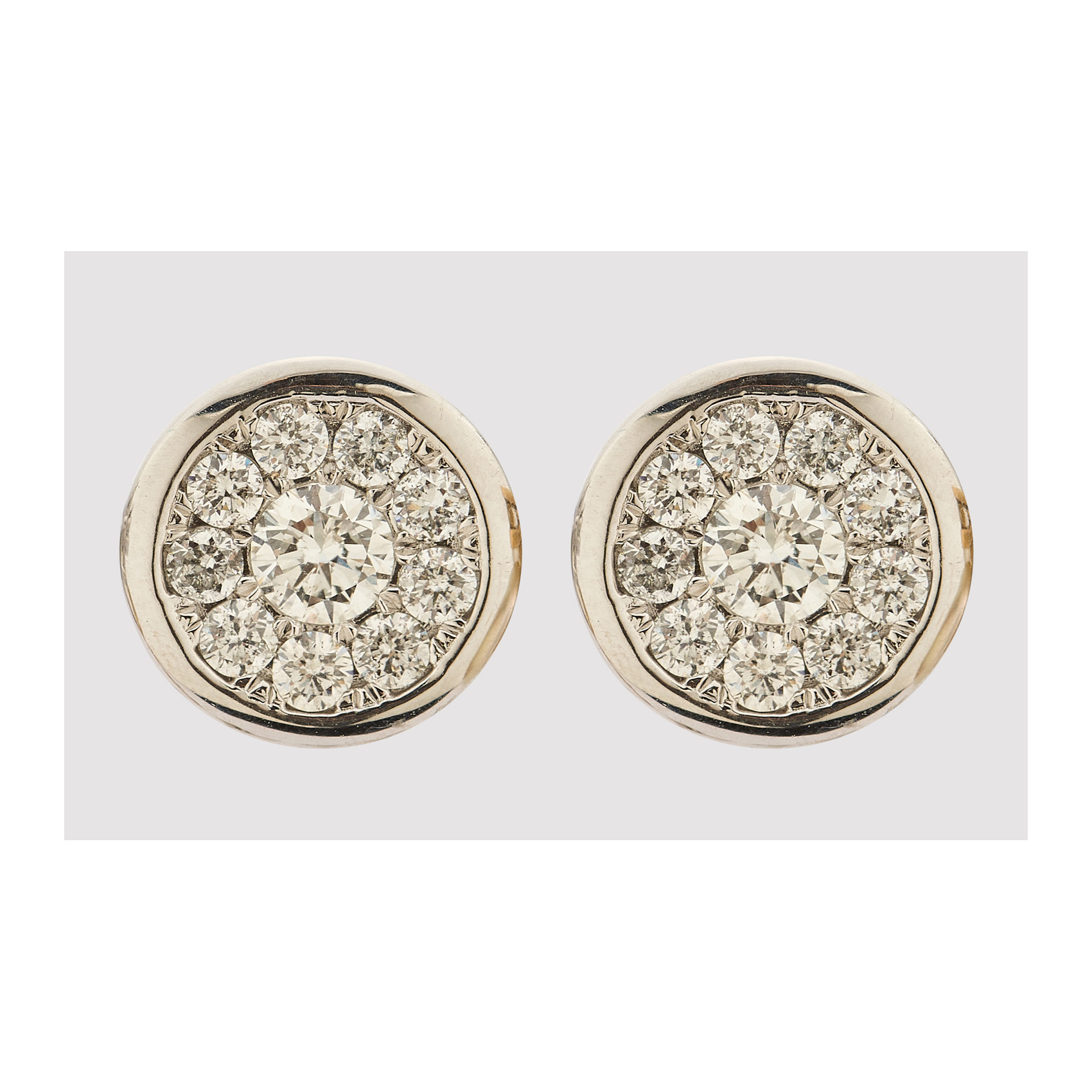 Pendientes diseño circular en oro blanco con rosetón de diamantes talla brillante.